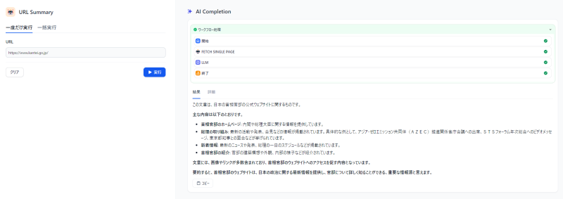例)首相官邸のホームページを貼り付けると右側に要約した内容を表示してくれます。