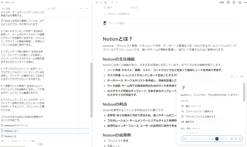 この例では「Notionとは?」という質問に対してAIが回答してくれた内容を保存しています。
